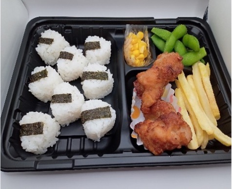 (市内のお弁当屋さんの協力によりお昼ご飯350円・おやつ150円でご提供します。好き嫌い、偏食、拘り等もご相談ください。食育を心がけ栄養バランスを考えてご提供します。 食事からも心身の成長を応援します。)